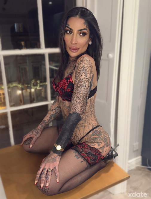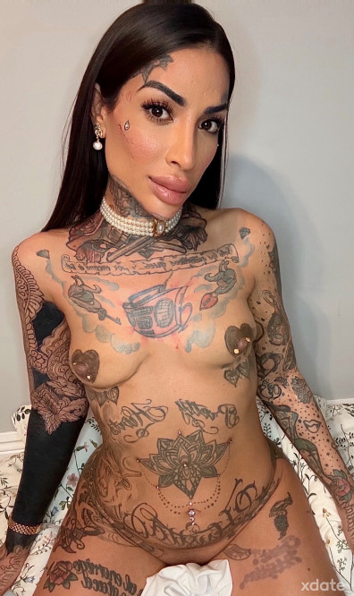 Daniela, eine spanische Trans-Puppe, komplett tätowiert