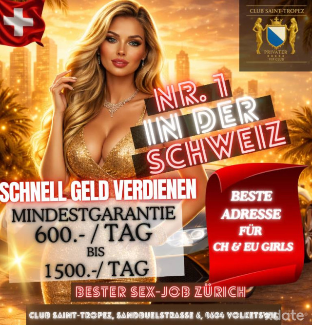Garantie minimale 600 francs par jour !Best Sexjob zürich