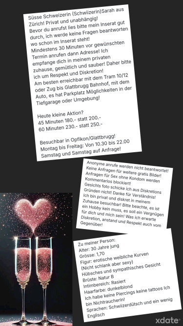 Mon annonce est réservée aux hommes qui savent se comporter avec une dame. Assez de fausses filles, alors mise sur la qualité suisse ! Je suis passionné, ouvert, chaleureux et toujours de bonne humeur. J'ai une silhouette érotique et féminine (pas mince mais des courbes aux bons endroits) avec une belle poitrine naturelle. Tu as envie d'une aventure sensuelle et érotique sans stress ? Alors tu es à la bonne adresse ! Tu veux échapper à ton quotidien et au stress pour un moment ? Viens chez moi et sois mon invité. Mes massages seront pour toi une expérience sensorielle enivrante et je sais très bien comment te gâter et créer une atmosphère détendue. J'aime te gâter avec ma bouche et mes mains, mais j'apprécie aussi d'être gâtée. Les hommes plus âgés sont aussi les bienvenus !